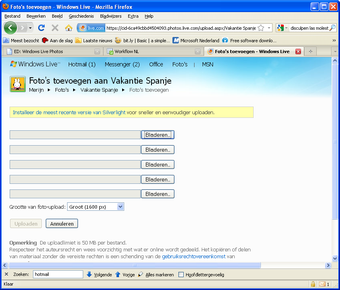 In Windows live Photos maak je gemakkelijk albums aan en upload je tot 5 foto's tegelijk. Dat gaat lekker snel en staan ze online dan download jij of anderen ze met een druk op de knop. De uploadlimiet per foto is met 50 MB per afbeelding erg ruim.